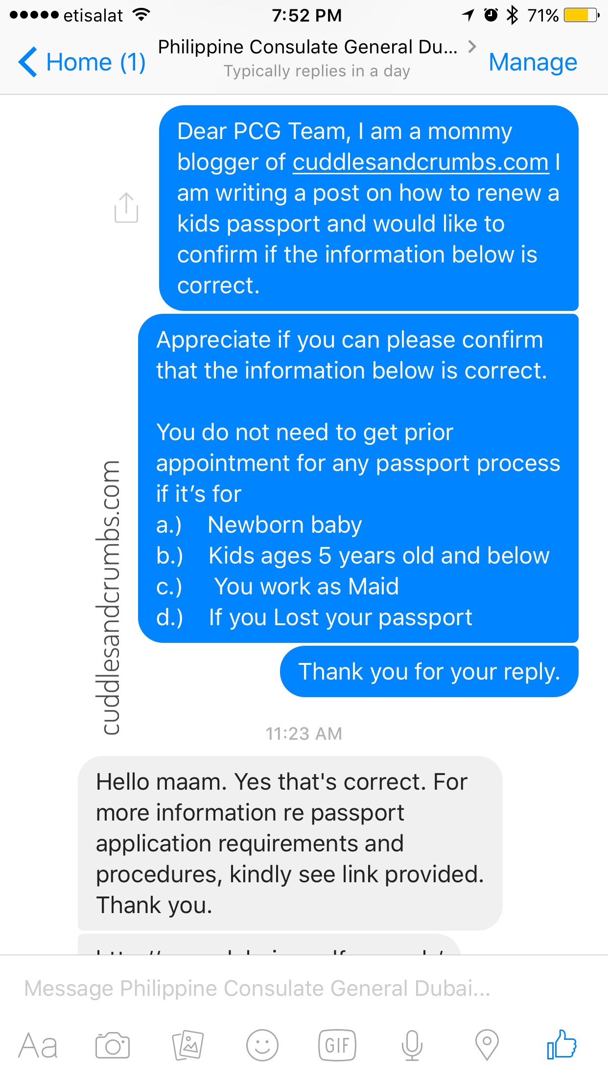 PCG Dubai confirmed that the four listed above do not need to get appointment to process passport application and renewal. Below screenshot was the confirmation I received from PCG Dubai facebook page.