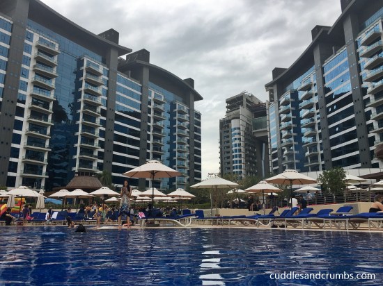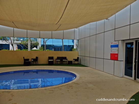 Water in this pool is heated which made it more inviting, it is unusually cold here in Dubai at March. Pool is deep that I myself need to tiptoe while carrying Chloe in my back, I forgot to pack her swim vest.